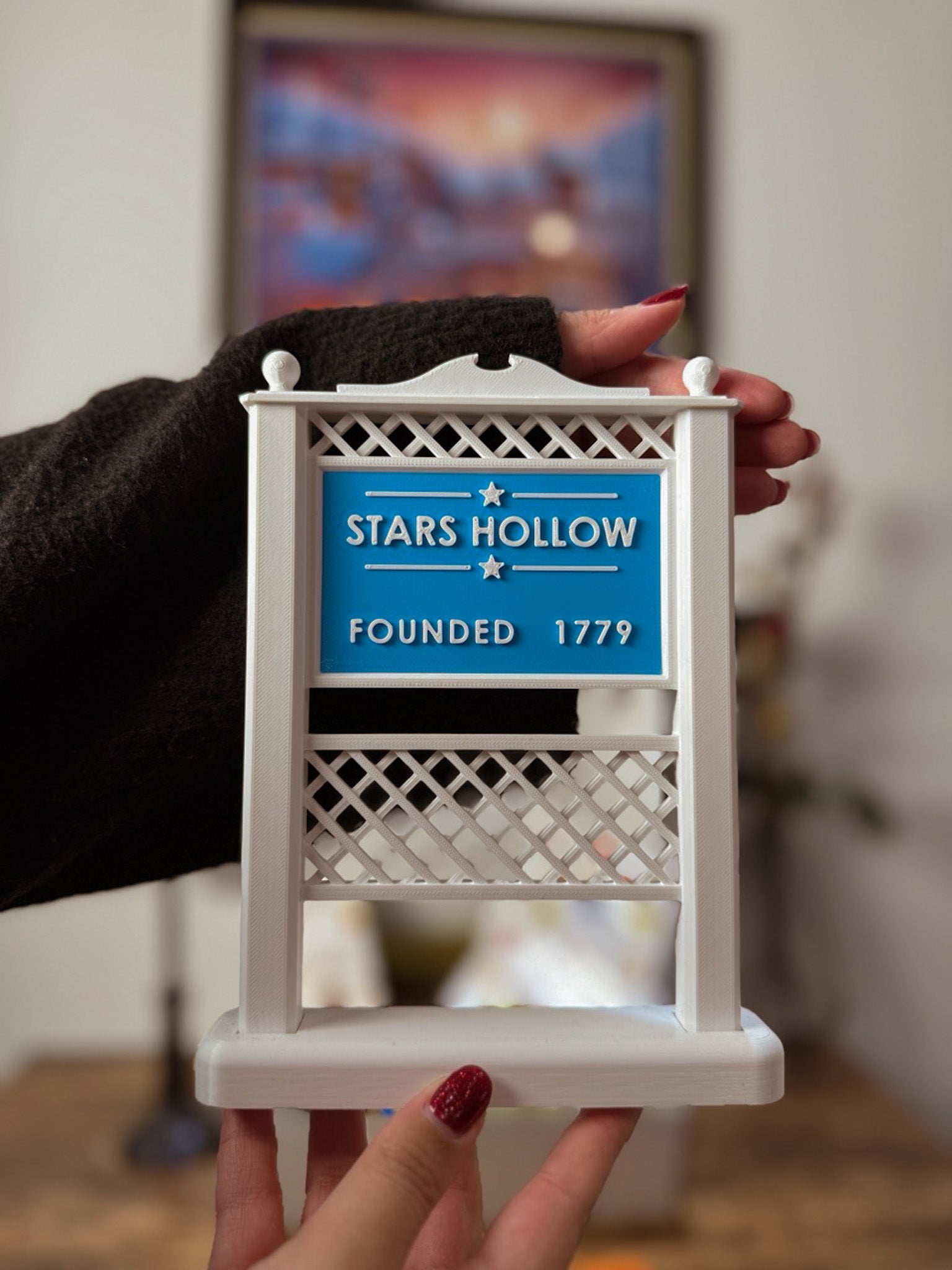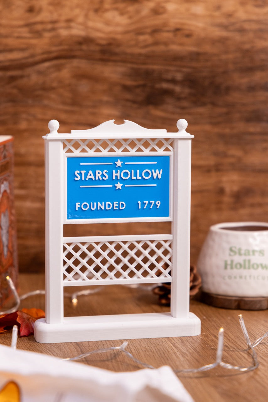 - 🏡 Panneau Stars Hollow (environ 20 cm) – imprimé en 3D et monté dans mon atelier en Isère