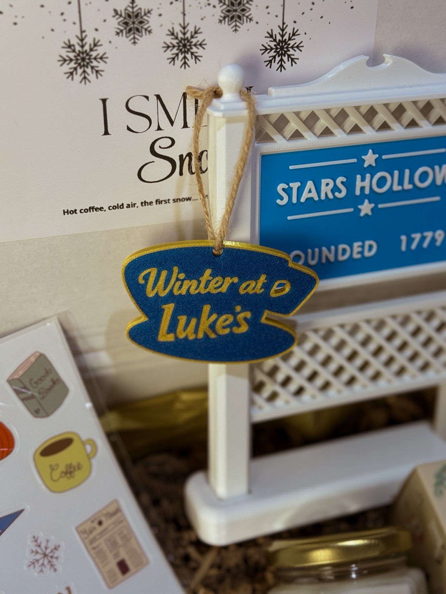 - ☕️ Suspension “Winter at Luke’s” – plate, idéale pour sapin, poignée, mur ou étagère